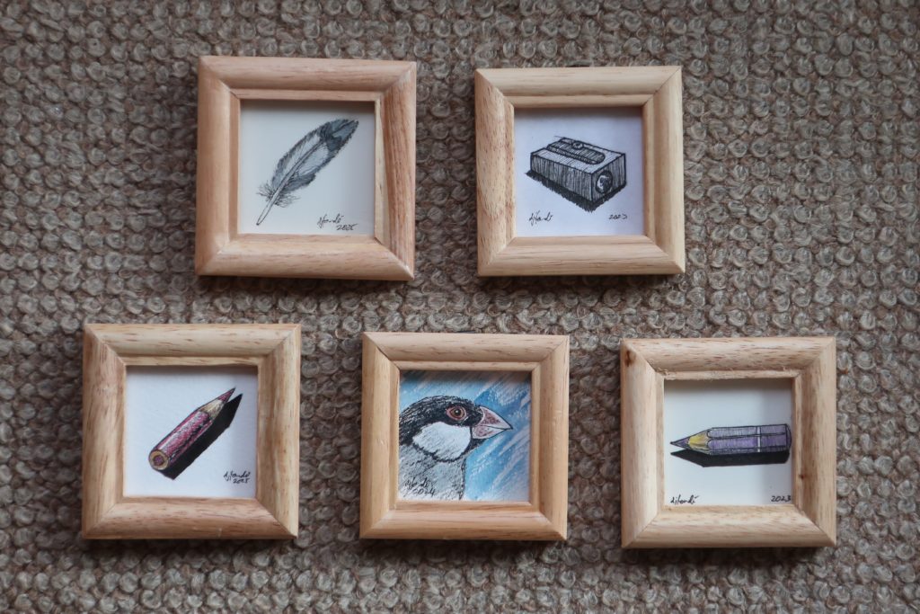 「アート」=お高め、と言うイメージが有りますが、この作品は額装を自分で行い、額装代を抑えることで、A4サイズの原画で6,600円という「手が届く」値段をつける事が出来ました。