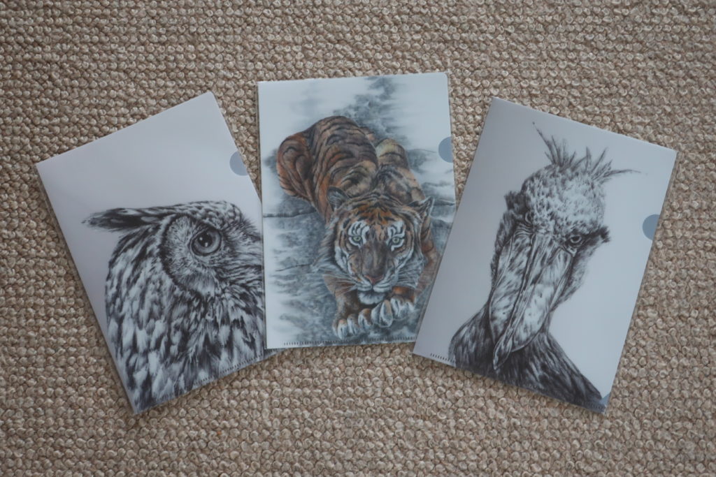 一点物のアートです。会場で是非「自分の一枚」を見つけてください。ハシビロコウ以外にも色々な鳥をモチーフにしています。