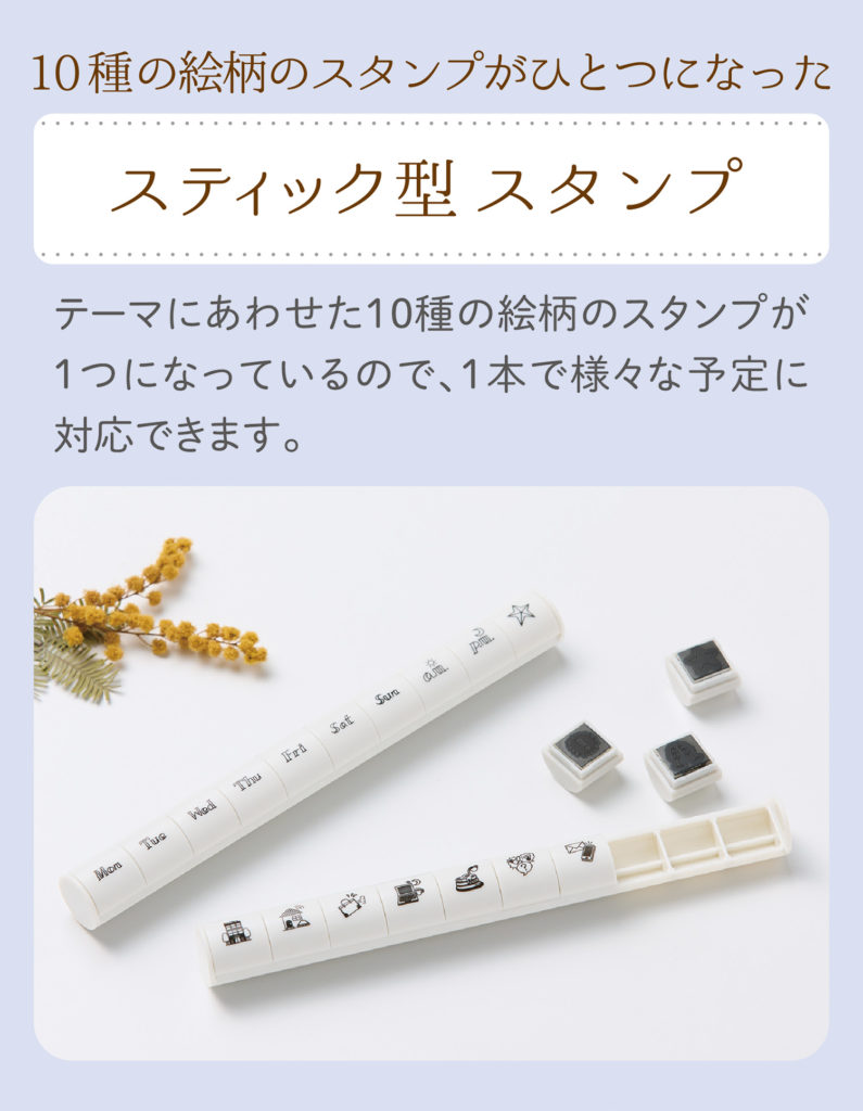 ペンケースに収まりのいいスティック型のミニスタンプ。