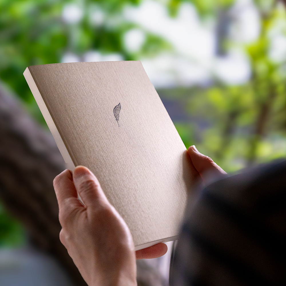 本文用紙には、万年筆ででの筆記に優れ、インクの裏抜けにも強い「ガルバス」を採用しています。なめらかな書き心地で、日々の記録やアイデアを書き留めるのに最適です。上品な光沢をまとった表紙には、一点ずつシルクスクリーンでモチーフを丁寧にプリント。実用性と美しさを兼ね備えたノートブックです。
