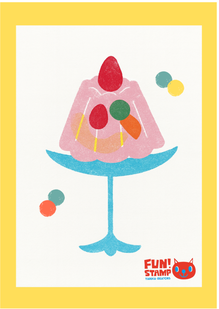 お米からとれるワックスを原料とした、安全な新しい絵具(えぐ) キットパスとウレタンスポンジを使って、フルーツゼリーのカードをつくりましょう!