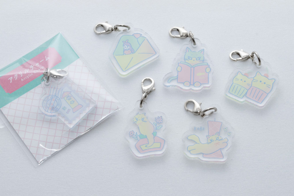 暮らし市のビジュアルポスターから飛び出したような色合いがかわいいアクリルチャーム。